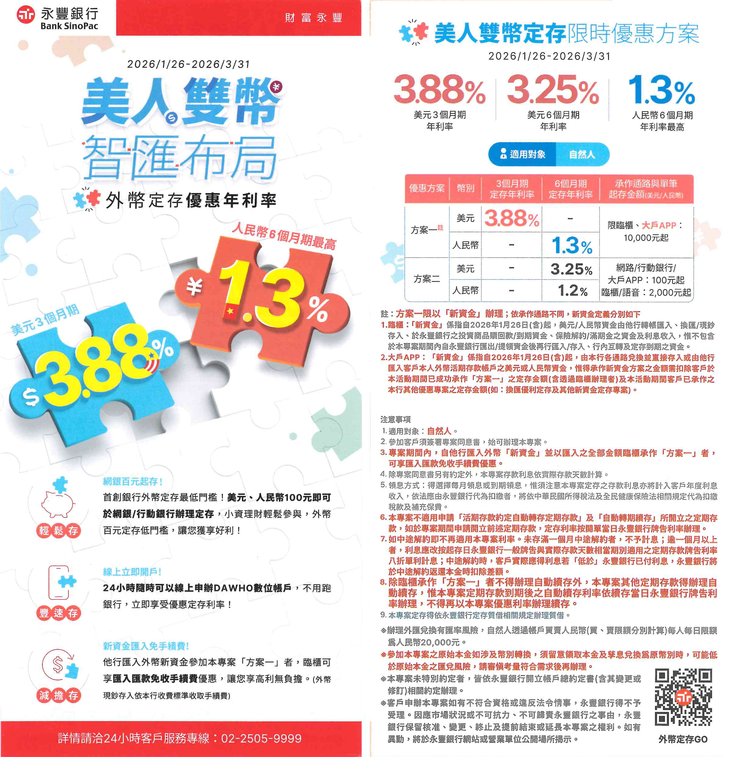 永豐銀行—優惠專案—美人雙幣豐存優利外幣定存優惠專案 |