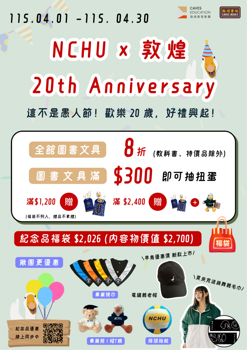 NCHU × 敦煌 攜手迎來重要的 20 週年!我們準備了滿滿的好康要送給你,千萬別錯過!