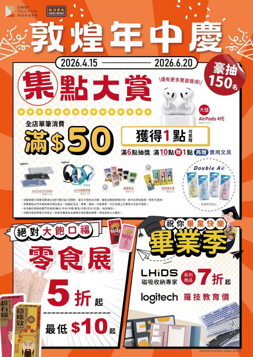 - 多款精選商品(Logitech 鍵盤滑鼠、AirPods Pro、文具禮盒等),最大獎Apple AirPods 4 代 等你帶回家。