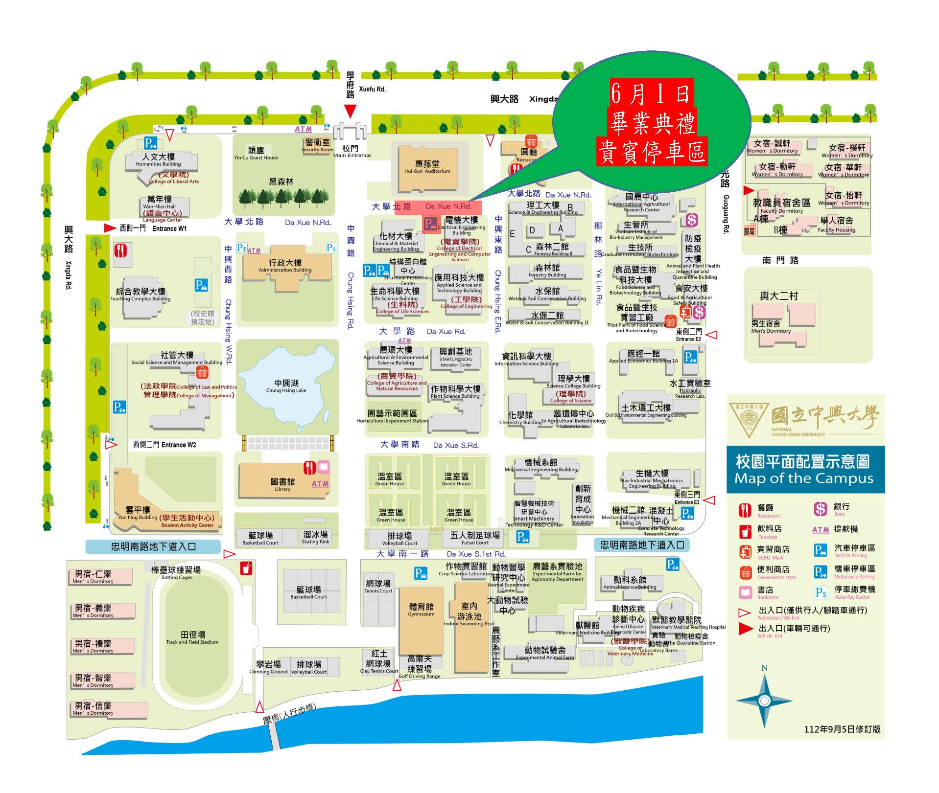 6月1日(六)今日舉行畢業典禮,大門開放不收費。另配合典禮需求,大學北路(惠蓀堂南側停車位)及電機大樓與化材館中間第二停車場車位,自5月31日晚間6時以後請勿停車,至畢業典禮結束(詳附圖)。 On Saturday, June 1st, the graduation ceremony will be held today. The main entrance will be open and admission is free. Additionally, to accommodate the ceremony, please do not park in the spaces on University North Road (south side of Hui-Sun Hall parking spaces) and the second parking lot between the Electrical Engineering Building and the Chemistry and Materials Science Building from 6 PM on May 31st until the end of the graduation ceremony (see attached map for details). 農夫市集,人數約350人。 Farmer's Market, approximately 350 people. 6月1日(六)外文系辦理全民英檢,人數約1500人。 On Saturday, June 1st, Department of Foreign Languages and Literatures conduct the General English Proficiency Test with approximately 1,500 people. |