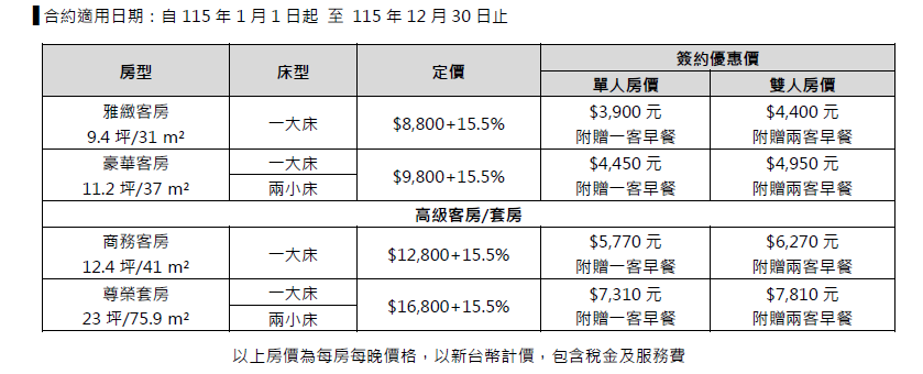 農曆春節(115.02.14-115.02.22)與跨年(115.12.31)不適用本優惠,如有特殊展期或異動依酒店公告為主。