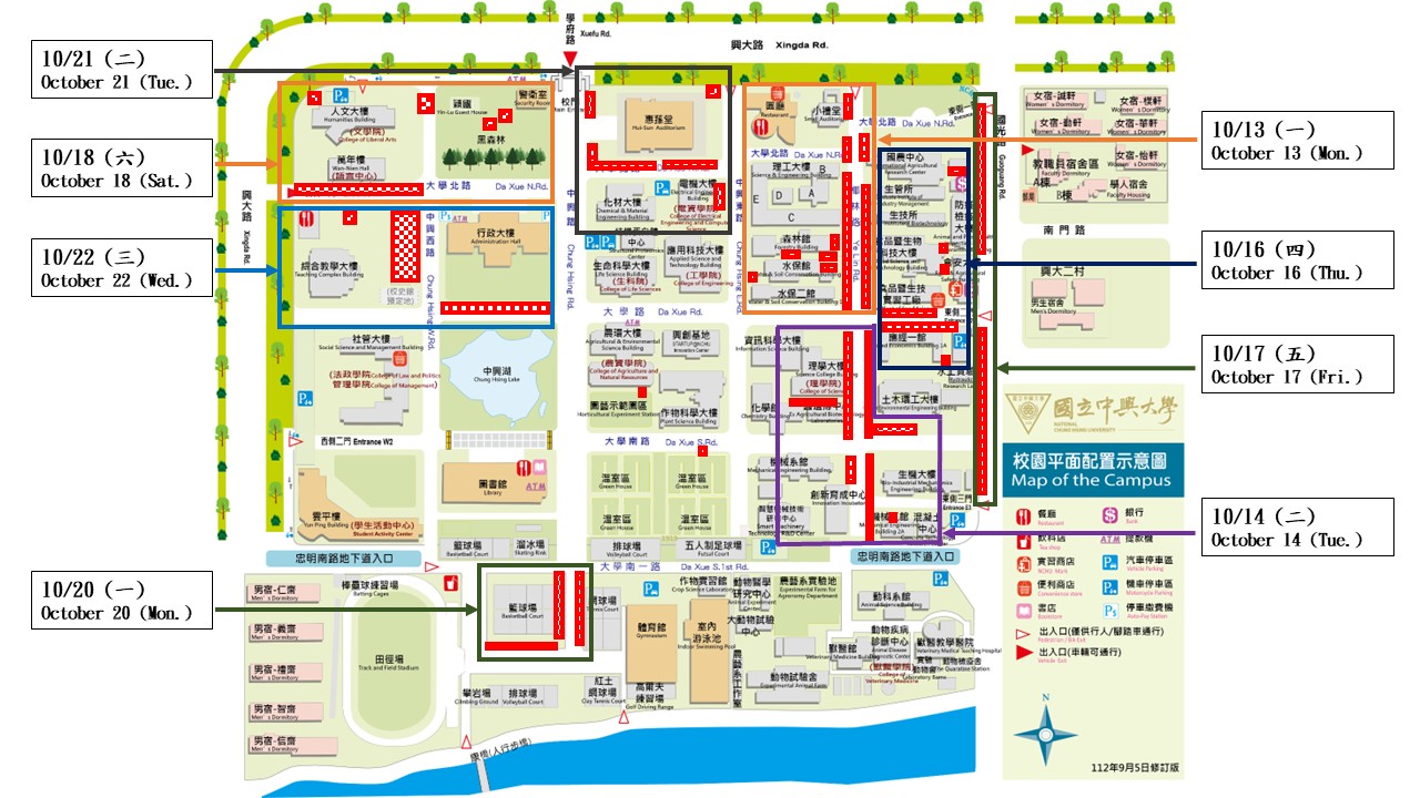 ※114年10月13日至10月22日(星期一至星期三):全校大王椰子樹修剪、土木環工大樓南側、西側門(萬年樓南側)、第一停車場等周邊樹木修剪。